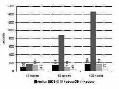 Набор данных, с которым работают эти четыре задачи, включает таблицу UserVisits, моделирующую журнальные файлы трафика HTTP-сервера, таблицу Documents, содержащую 600000 случайным образом сгенерированных HTML-документов, и таблицу Ranking, которая содержит некоторые метаданые, вычисленные на основе данных из таблицы Documents. Схемы таблиц тестового набора подробно описаны в . Вкратце, таблица UserVisits содержит 9 атрибутов, наиболее крупным из которых является destinationURL, имеющий тип VARCHAR(100. Каждый кортеж включает примерно 150 байт. Таблица Documents содержит два атрибута: URL (VARCHAR(100)) и contents (произвольный текст). Наконец, таблица Ranking содержит три атрибута: pageURL (VARCHAR(100)), pageRank (INT) и avgDuration (INT).